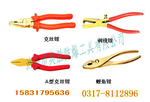 防爆钳,防爆剪刀,例如:防爆尖嘴钳,防爆鲤鱼钳,防爆斜口钳,防爆核桃钳等。